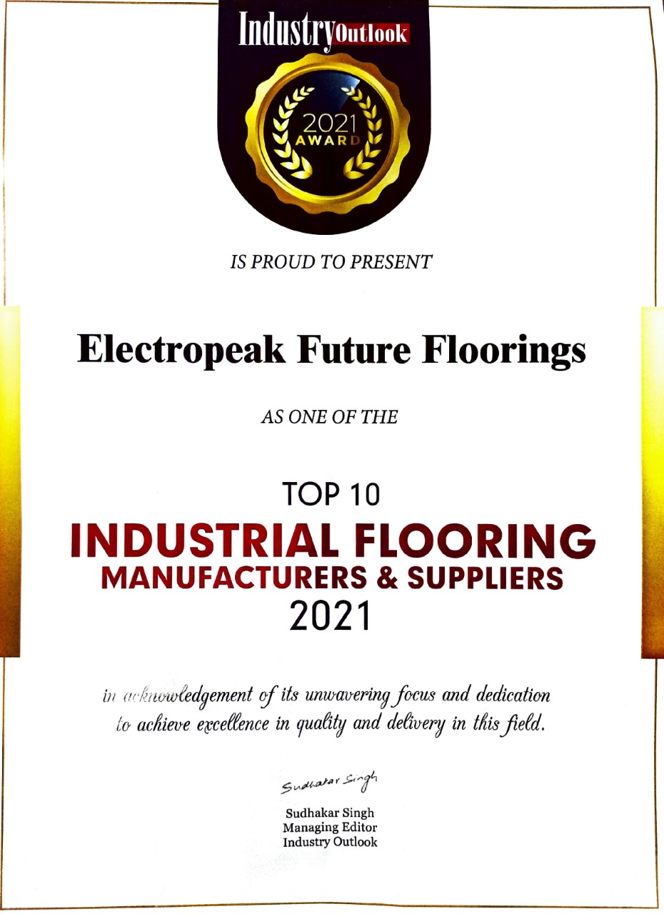 To Whom It May Concern This is to certify that Electropeak Future Floorings have executed more than 50000 sqft over Oily Substrates successfully in our plants located at Ganganagar and Taratalla respectively. We are extremely satisfied the way they completed the jobs engaging modern machineries to prepare the oily surfaces minimizing our downtime. After sales services offered by them is also of highest standard. We wish them all the best in future.